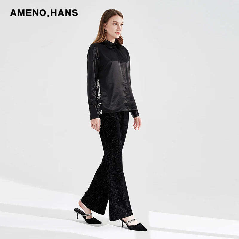 Product Description Women's Blouses & Shirts Best Quality Long sleeve Pleated back print Woven Shirt